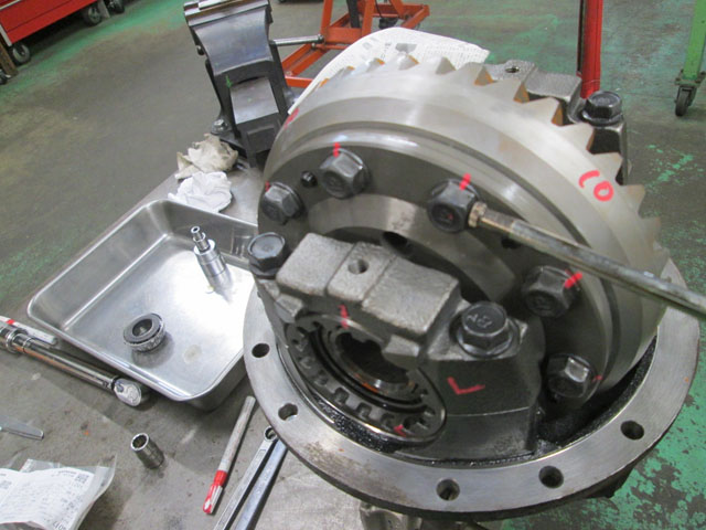 デフキャリアに組み込んで、歯当たりとバックラッシュを調整。